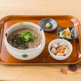 ※当店の「とろろ汁」は、粘りと風味の良い九州産自然薯、山口県産自然薯を100%使用して、煮干しと昆布で取ったオリジナルのだしで作っています。冬季は豊田産の自然薯「ゆめとろろ」を使うこともあります。